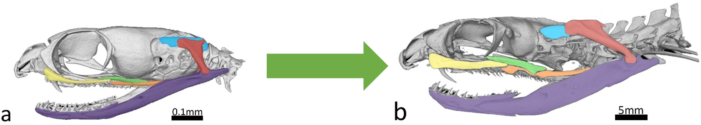 Understanding these changes in the anatomy of the skull and jaw bones has only been possible through the application of new scanning and computing methods. It demonstrates how micro-CT methods and shape analysis through Geometric Morphometrics can provide valuable insights into the morphology of animals and allow us to learn more about how these animals feed and how they adapt to different prey items.